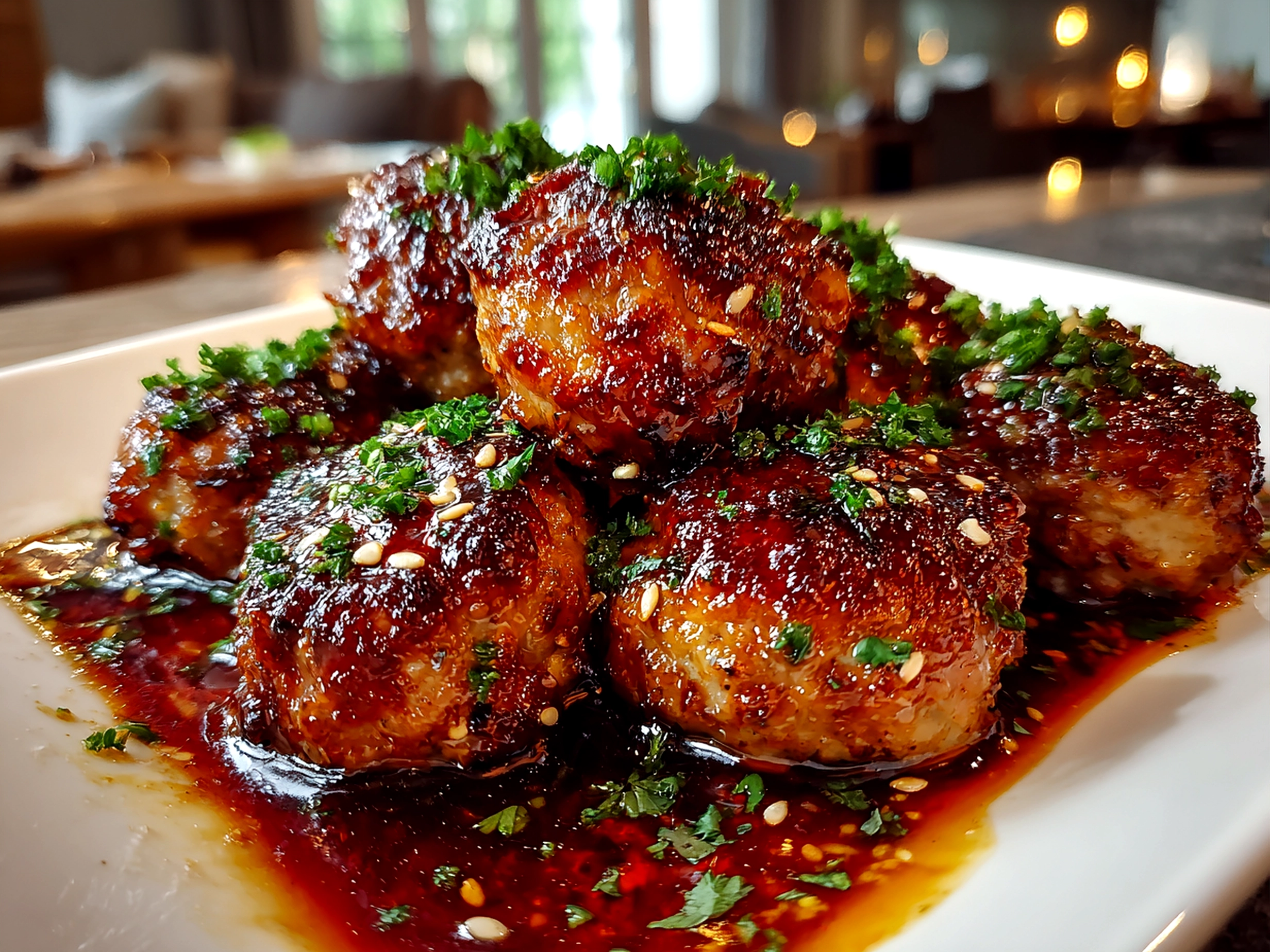 - Serve meatballs warm, garnished with chopped green onions or sesame seeds if desired.