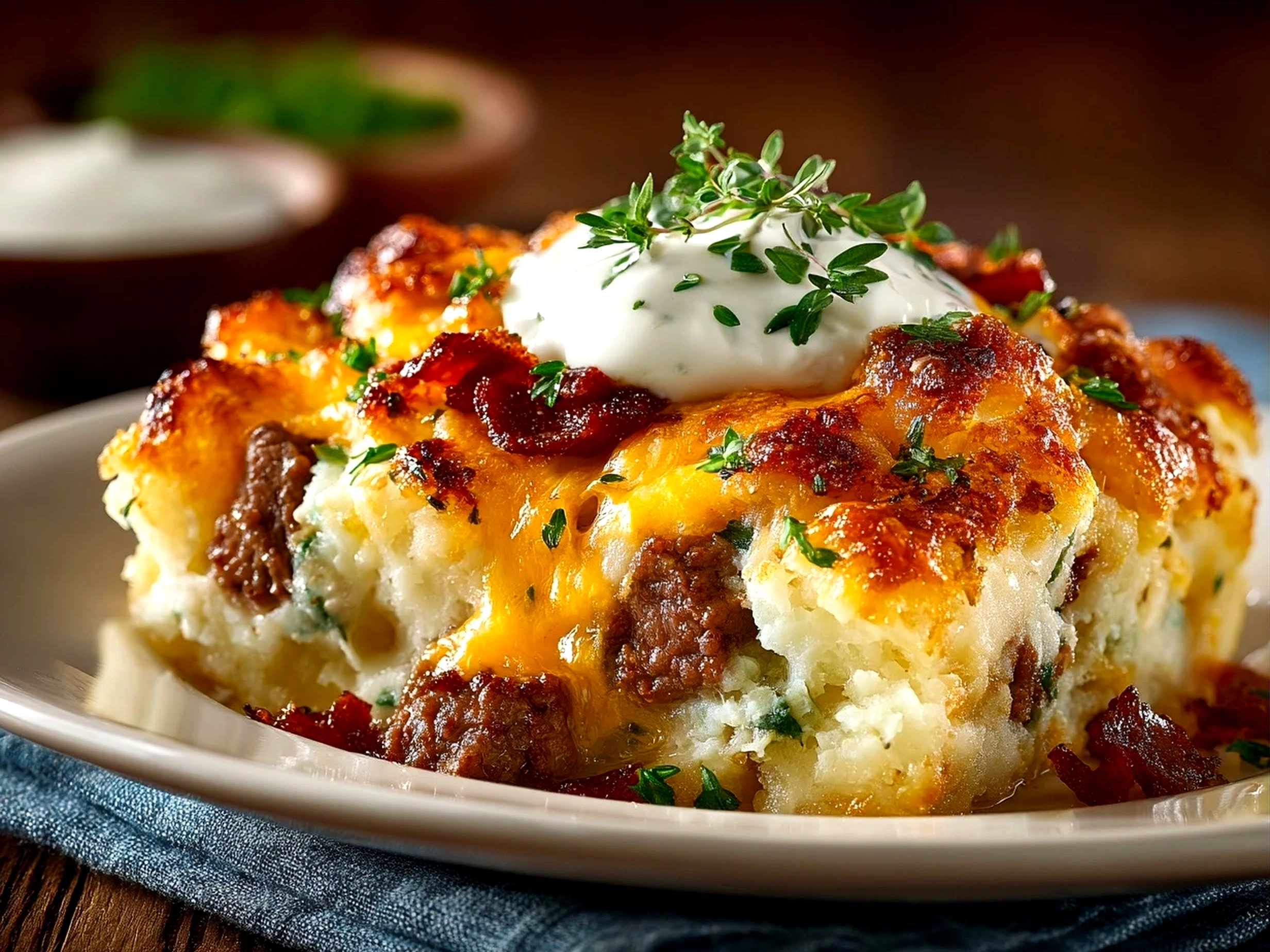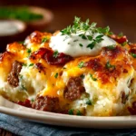 A hearty and comforting casserole packed with savory ground beef, tender potatoes, melted cheese, and flavorful toppings perfect for a satisfying dinner.